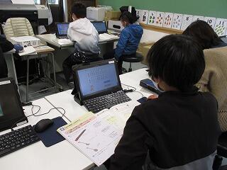 3月10日(木)5校時に、4年生が音楽でプログラミング学習をしました。指定された5つの音と音符を組み合わせて作曲します。4分の4拍子になる音符が上手に組み合わせられなくて、手こずっている子もいましたが、できあがった音楽は、お囃子調のきれいな曲になりました。