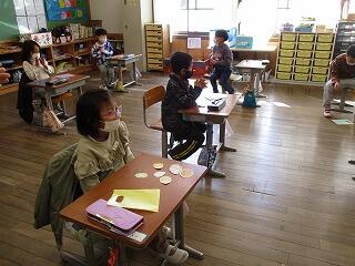 3月10日(木)の2校時に、1年生が初めての外国語活動を行いました。前日から楽しみにしていた1年生!今日の授業では体のパーツや数について学習しました。宝探しでは、教室や廊下などに隠されているエッグを必死に見つけ、その数を数えて大はしゃぎしていました。