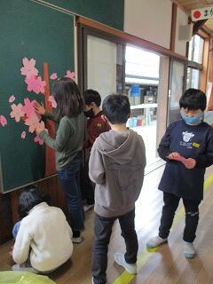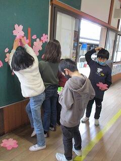 6年生の卒業まで残り2週間となりました。校内では少しずつ卒業に向けての準備が進んでいます。3年生以上が校内の掲示板を装飾したり、各学年式で流すお祝いメッセージを録画したりしています。