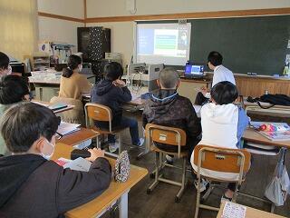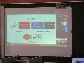 3月4日(金)の4校時に、6年生が外国語の授業でALTとオンラインで交流しました。パワーポイントで出身国アメリカのことや、自己紹介で特技の黒板アートやスポーツ、食べ物などいろいろ教えてもらい、クイズや質問をしました。コロナ禍で一度も来ていただくことはできませんでしたが、中学校で会えることを子どもたちは楽しみにしていました。