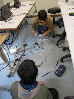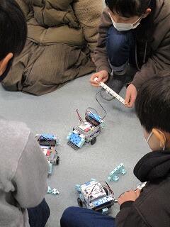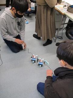 今日は、ICT支援員さんに指導いただきブルドーザーの動き(前後左右、速度)をプログラミングし、指令を送って動かしました。速度を変えることで動きが変わり、コースを動かしたり対戦したりしながらプログラミングの楽しさを味わいました。
