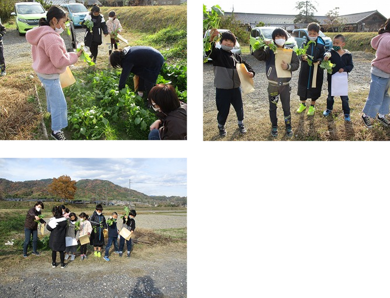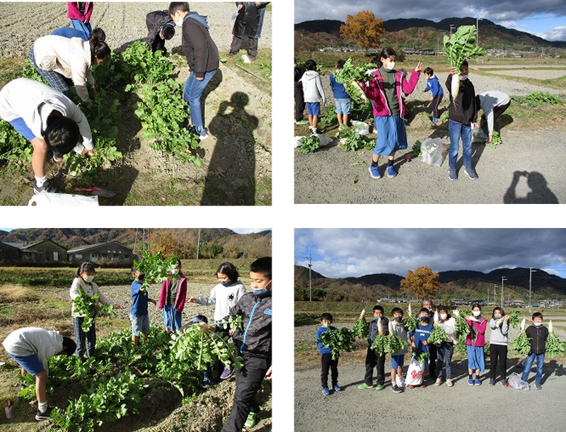 12月18日()の5校時に、3年生がこれまでお世話をしてきたかぶの収穫をしました。葉っぱに芋虫がついているとわーわー騒ぎながら、収穫を楽しんでいました。