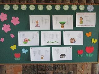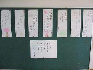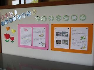 新学期が始まって、学習が少しずつ進んできました。廊下の掲示板等には、子どもたちの書写や絵画、学習プリントなどが掲示されています。