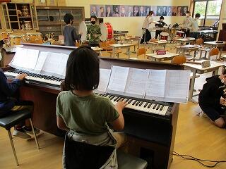 4月27日(火)の6校時、初めてのクラブでスポーツと音楽に分かれて活動をしました。スポーツクラブはティーボールを、音楽クラブは「いつも何度でも」の合奏に取り組みました。1年間、4年生以上が二グループに分かれて、いろいろ体験し学習していきます。