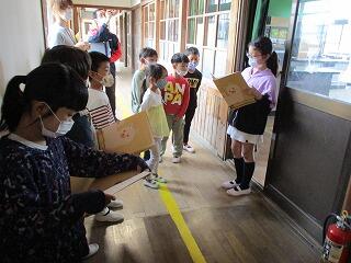4月28日(水)の1,2校時に、2年生がリーダーになって学校の案内を1年生にしました。最初に2つのグループに分かれて自己紹介した後に、初めて入る職員室や校長室、いろいろな教具が置かれている特別教室を興味津々、2年生の説明を聞きながら楽しそうに見学していました。