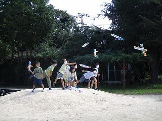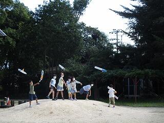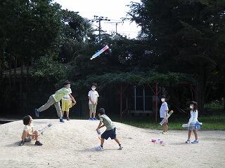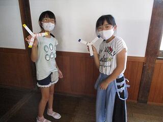 9月29日(水)の生活科の時間に、2年生は手作りおもちゃの学習をしました。ぴょんぴょんガエル、風で動く車に続く第3弾は、ビニール袋を使った風船です。傘入れの長い袋を利用し、遠くまで飛ぶように羽や飾り付けをして完成です。実際に飛ばしてみると、、、風に浮かんで遠くまで飛び大喜びでした。