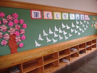2年生の教室には、生活科の町探検で見つけてきた恭仁がいっぱいです。大きな背高のっぽのススキの穂のような植物や、落ちていたという鹿の角、拾ってきたどんぐりで作ったこびとの人形やお芋のツルで作ったリースなど、子どもたちの作品もいっぱいの博物館のようです。書き初めは「何にでも ちょうせん」頑張ります!!