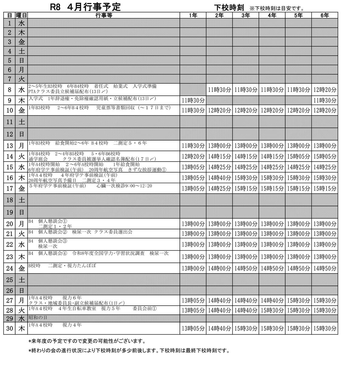離任式 令和8年3月30日(月)8:45から