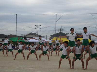 本日、運動会が行われました。天候が少し心配されましたが、すべてのプログラムを予定通り行うことができました。「チームで協力し、皆が楽しく輝ける運動会にしよう」のスローガンのもと、すべての児童が力を出し切り、頑張ってきた成果を発揮できた運動会となりました。保護者の皆様、地域の皆様には、多数ご来校いただいたこと、ご理解・ご協力を賜りましたこと誠にありがとうございました。児童のみなさんよくがんばりました!