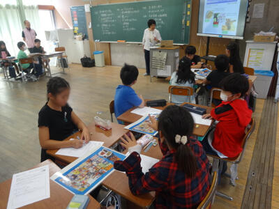 5年生が、食品ロスのことやフードバンク、フードドライブのことについて学習をしました。講師として、木津川市環境課の方やフードバンク木津川の方々に来ていただき教えてもらいました。日本の食品ロスは年間で523万トンもあることや木津川市のごみも約4割が生ごみであることから、「食品ロスを減らすにはどうすればいいのか?」をグループで討議しました。「食べられるだけを買う。」「買い物前に考える。」「近所にあげる。」など様々なアイデアが出されました。SDG’sの目標12にも、2030年までに食品ロスを半減させることなどがあります。自分たちにできることをやっていきましょう。講師の皆様ありがとうございました。