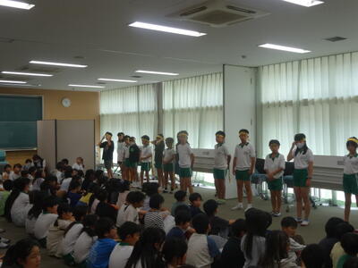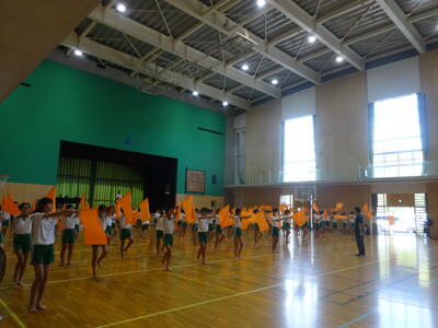 朝の時間に、運動会に向けての「応援練習」が始まっています。高学年の応援リーダーが各クラスに行って練習を行っています。応援アピールの練習から当日までの活動の計画、振り付けの考案などを通して子どもの自主性、創造性が育ちます。また、高学年としての自覚と指導力も育ちます。みんなでがんばっていきましょう。
