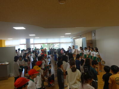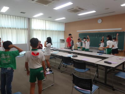 10月7日昼休みに『ブロック練習』がありました。運動会の4色のブロックごとに集まって応援の練習をしました。歌を歌ったり、動きを確認したりと、どのブロックも高学年のリーダーを中心に主体的にがんばっていました。