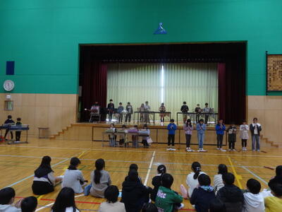 体育館で5年生が練習してきた合奏を学年で聴き合いました。各クラスでの発表はすばらしいものがあり、練習してきた成果が表れていました。心まで揃った演奏に感動しました。すてきな演奏をありがとう!