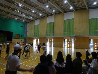 5年生は、バスケットボールの学習をしています。基本的な技能の習得とともに、攻守の入り混じるゲームの中で、チームの作戦を工夫しながら学習を進めていきます。チームで声を掛け合いながらゲームをしていました。1年間の学習のまとめの時期でもあります。かかわり合いを通して、クラスの絆をさらに深めることができるようにがんばりましょう。