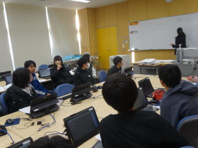 6年生は、理科で「発電と電気の利用」の学習をしています。内容の一つに「電気をむだなく使うプログラムをつくってみよう」があります。ICTサポーター(ベネッセ)の先生にお世話になり、必要なときだけ明かりがつくプログラムを学習しました。光センサーと赤外線フォトリフレクターを操作をしたときの数値の変化を確認したり、条件分岐を考えたりしながらプログラムしました。少し難しいようでしたがみんな熱心に考えていました。周りが暗くて、人が近づいたときにLEDの明かりがついたかな?