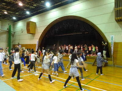 昼食のあとは、大ホールに移動して「ミニ運動会」を行っています。