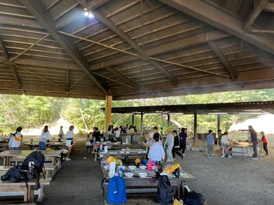 青年の城を退所し、野外活動センターに移動しています。現在焼きそばづくり(野外調理)に取り組んでいます。
