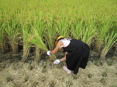 みんな最初はこわごわ刈っていましたが、どんどん早く刈ることができました。