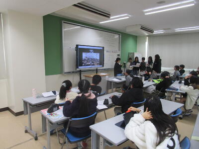 新潟県の上越市立東本町小学校とオンラインで交流しました。