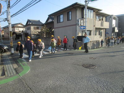 6年生も後ろから見守りながら一緒に登校しました。