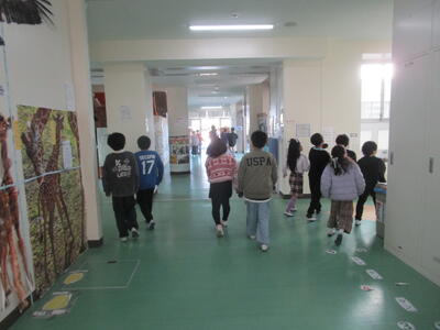 6年生が校内にかくれ、下学年が校内を探します。