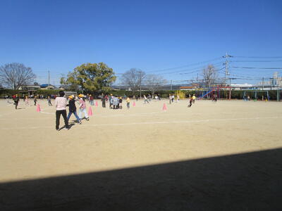 運動場では、6年生から下学年が逃げ回ります。