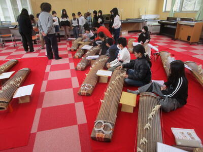 4年生が本校の保護者の方を先生に招いてお琴体験を行いました。