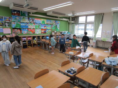 5年生と来入児の交流を行いました。