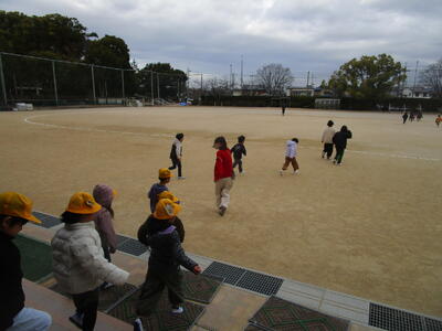 寒空の下、元気な声が運動場から聞こえてきました。