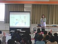「体によいおやつの食べ方」をテーマに、カロリーについて触れ、おやつやジュースのの適切な飲食についての話を聞きました。