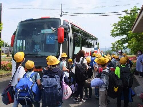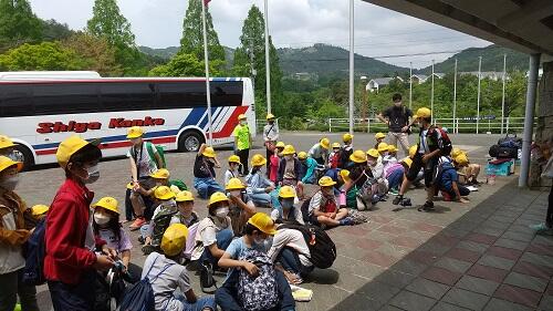 本校5年生児童は予定通り、9時50分ごろ林間学習に出発しました。