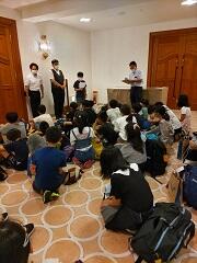 修学旅行の様子です。1日目の行程を順調に終え、17時過ぎにホテル志摩スペイン村に到着しました。写真は入館式の様子です。