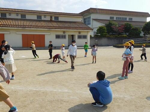 「SKIP遊び」では、全校児童が12人前後の小グループに分かれ、