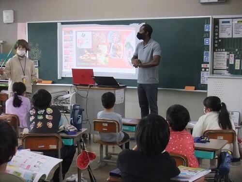 1学期の5・6年生に引き続き、今日は、3・4年生の外国語活動の時間に、