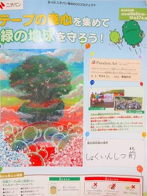 2つ目は、「巻しん回収」です。回収した巻しんは、段ボールに再生されたり、森の植樹活動に役立てられたりします。完全に使い切った粘着テープの巻しん(紙製、直径15㎝×幅75㎝以内)であればどのメーカーの巻しんでも構いません。トイレットペーパーやラップの芯は回収できませんので、雑紙としてお出しください。