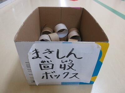 それぞれの学舎の玄関ホールにペットボトルキャップ、巻しんの回収ボックスはありますので、そこに入れてください。皆様のご協力をよろしくお願いします。
