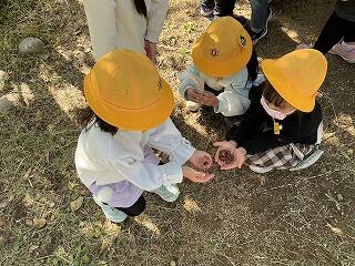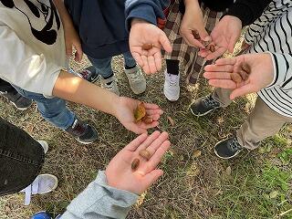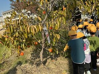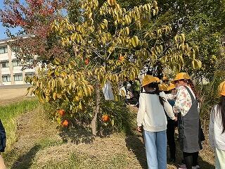 子どもたちは「はっぱの色が緑から黄色に変わった」、「前行った時には落ちてなかったけれど、どんぐりがあった」、「柿の実が大きくなった」、「夏にいた虫がいなくなった」などの変化にたくさん気づいていました。