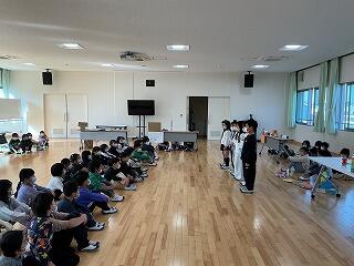 NHK交響楽団の方々に来ていただき、ヴァイオリン・チェロ・ピアノのアンサンブルで名曲を演奏してもらいました。また、子どもたちへ楽しく楽器と曲のお話もしていただきました。