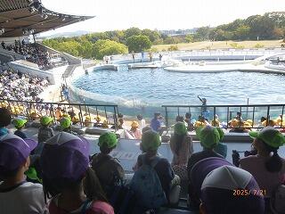 イルカショーでは、イルカがジャンプをしたり、回転をしたりする様子を見て、子どもたちはとても喜んでいました。