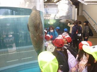 水族館の中では、グループの友だちと行動し、たくさんの生き物に出会いました。
