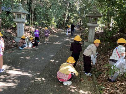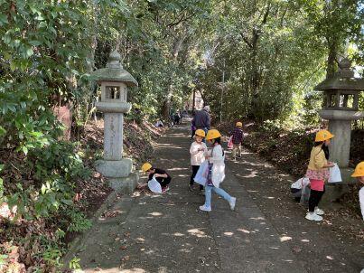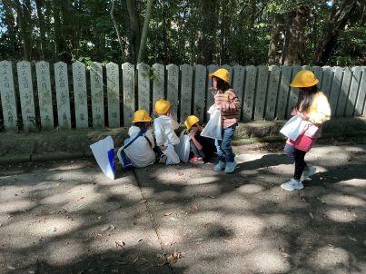 校区内にある涌出宮へ1年生が秋見つけへ行きました。