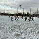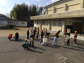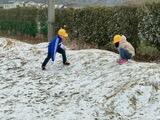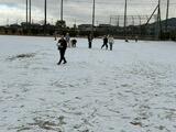 低学年は校庭で雪に触れ、元気に遊んで