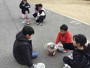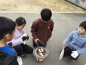 3年生が七輪体験をしました。七輪でおもちを焼いておいしくいただきました。