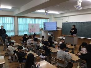 本校の学校歯科医、大西先生が5年生児童たちへ