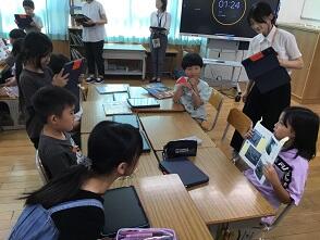 新しくなったタブレットを使った学習で、子どもたちはやる気いっぱいでした。