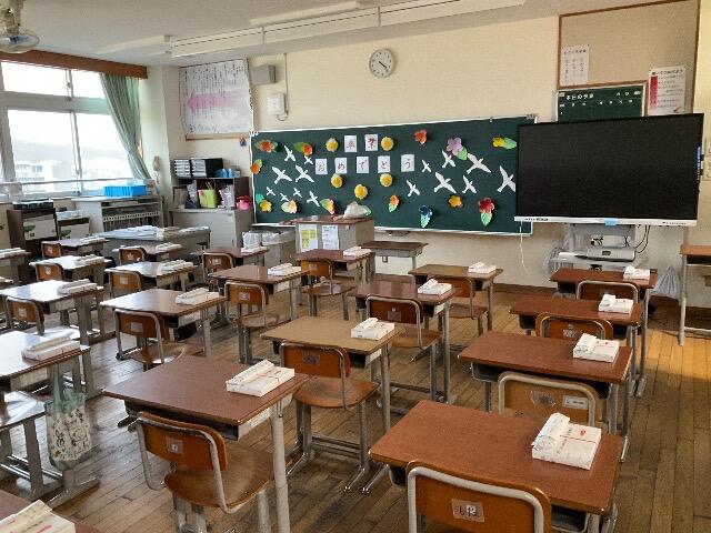 これは卒業式前日、明日の卒業生達を静かに待つ6年生教室の様子です。
