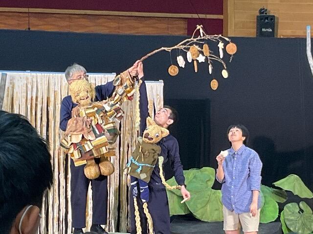 化け物の不思議な世界を人形と様々な小道具で見事に表現されており、子ども達の目は釘付けでした。途中の不思議な縄跳びのシーンでは見事な技に自然と拍手が巻き起こる等、とてもいい雰囲気で劇の鑑賞ができました。