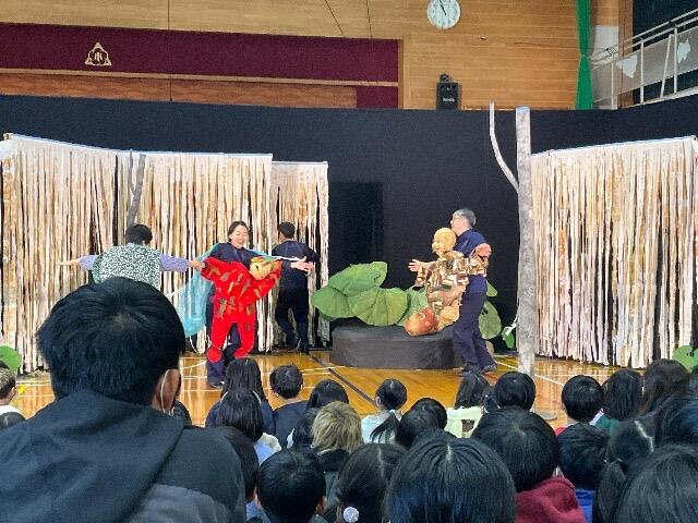 先日、芸術鑑賞会を行いました。本年度は劇団風の子・北海道さんにきていただき、「めっきらもっきらどおんどん」を上演してもらいました。