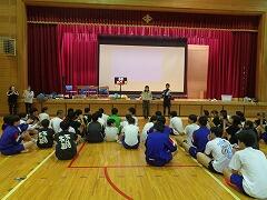 全学年、「自分にも助けられる命がある~命のバトンをつなげよう~」をテーマに、日本赤十字社京都府支部より、救急法指導員の方を2名お招きし、救急法について学びました。