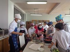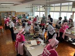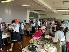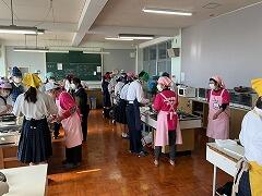 毎年恒例、食生活改善推進員様にご協力いただき、調理実習を行いました。たくさんの地域のみなさまに教えてもらいながら自分たちで作った昼食の味は格別でした。本日は2年A組、明日は2年B組が実習します。